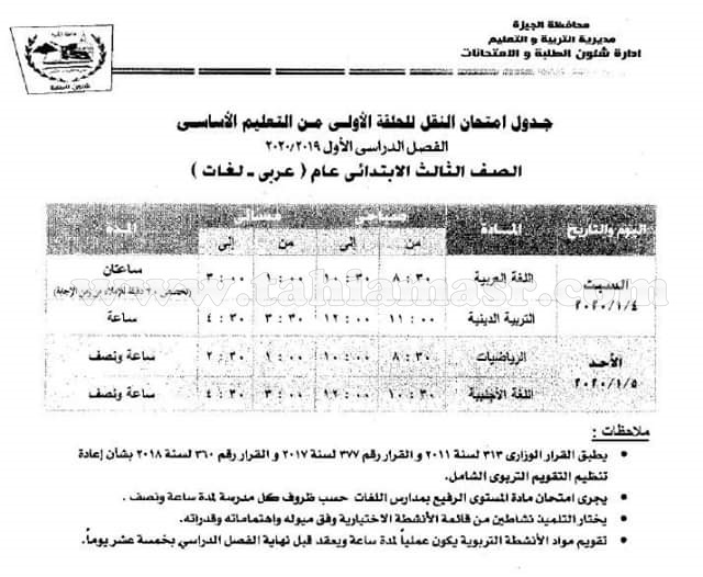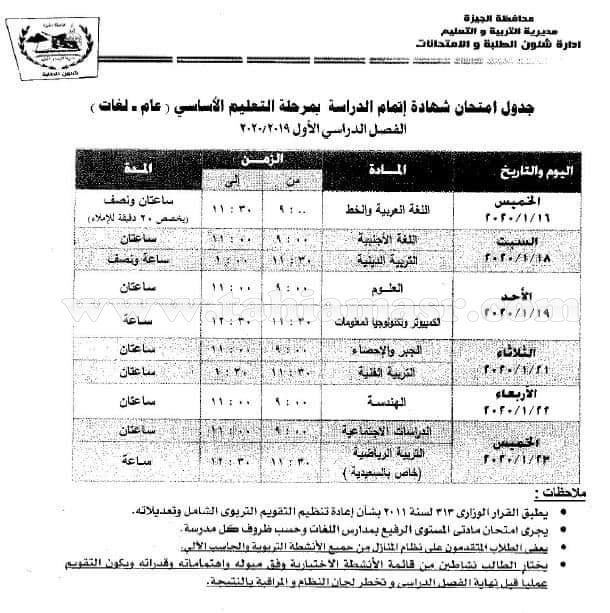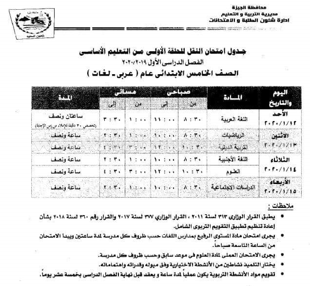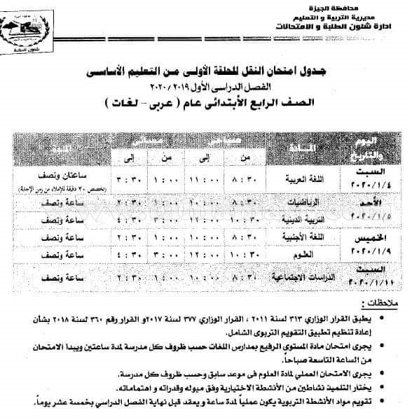 وتبدا امتحانات الصف السادس الإبتدائى، عربى و لغات، 12 يناير القادم، وتنتهى 15 يناير، والخامس الابتدائي تبدأ 12 وتنتهى 15 يناير، والرابع الإبتدائى تبدأ 4 يناير وتنتهى 11 يناير.