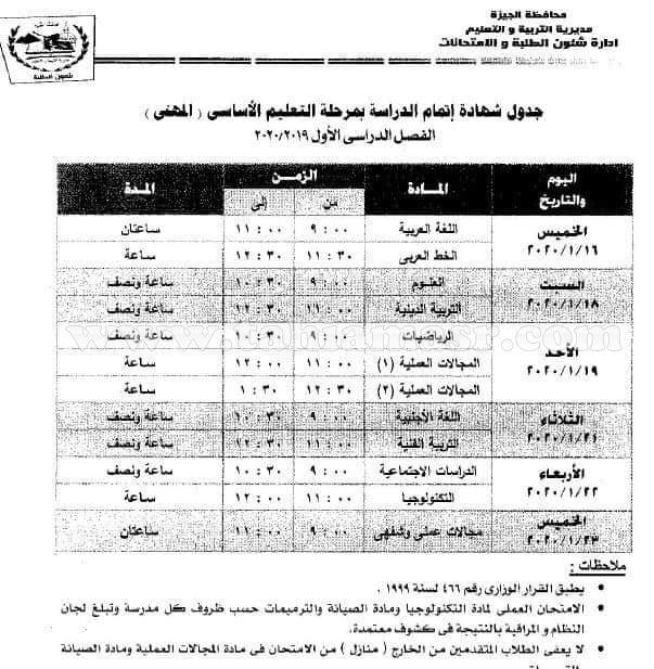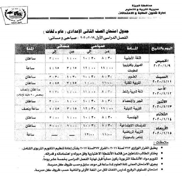 أما امتحانات الصف الأول الإعدادى عام - لغات، والثانى الإعدادى عام - لغات، تبدأ 9 يناير وتنتهى 15 يناير، وتبدأ امتحانات شهادة التعليم المهنى وكذلك الشهادة الإعدادية عام - لغات، 16 وتنتهى 23 يناير