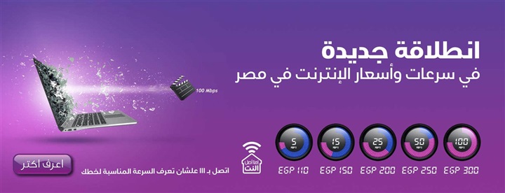 - للسعة 50 ميجابيت للثانية زيادة، يتم إضافة 60 جنيه على الاشتراك.