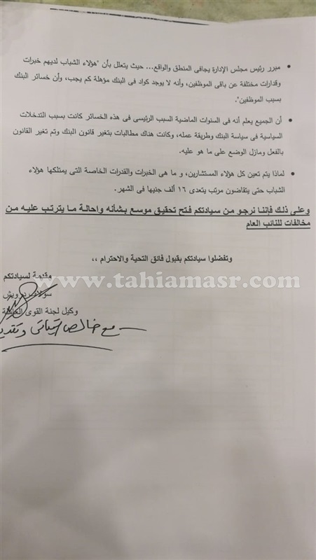 وتساءلت "درويش" عن سبب تعيين كل هولاء، فى حين ان البنك الزراعى به اكثر من 17 الف موظف، وانا موظفه ايضا هناك، مؤكدة ان البنك به كوادر شبابية عديدة وخبرات كثيرة، ولهذا نستفسر عن سبب تعيين هولاء وما حاجة البنك اليهم.