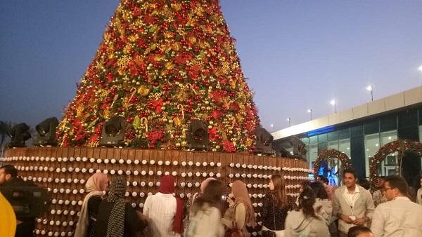 تحيا مصر .. رسائل على مصابيح شجرة الكريسماس في منتدى شباب العالم 2019