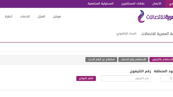 - الدخول على موقع المصرية للاتصالات