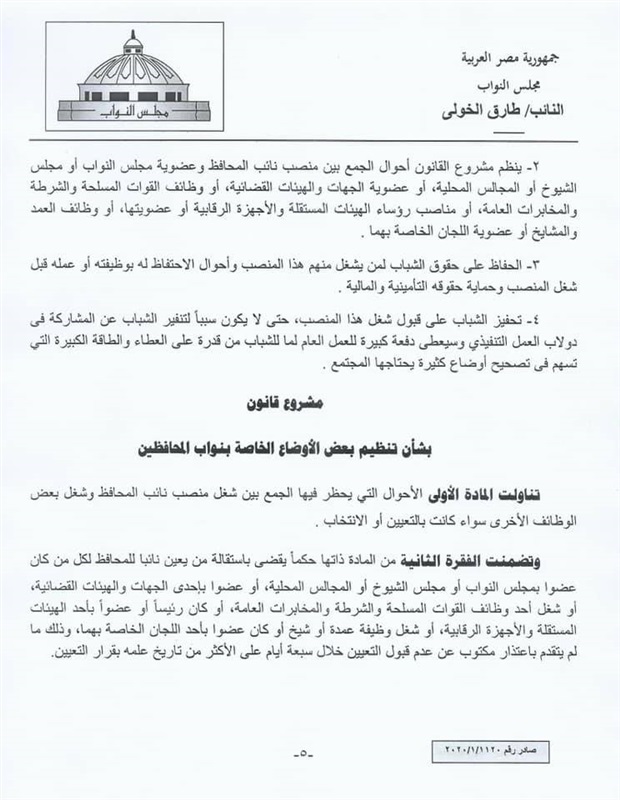 الخولي يتقدم بمشروع قانون بشأن أوضاع نواب المحافظين (صور)