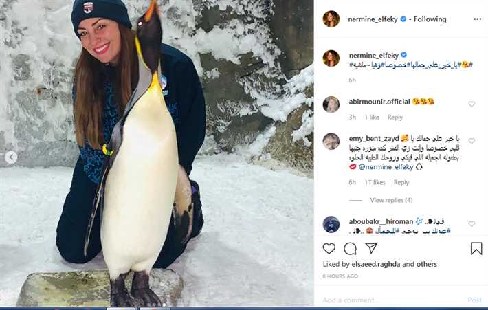 نرمين الفقى تلعب مع البطاريق فى احدث صورها على الانستجرام