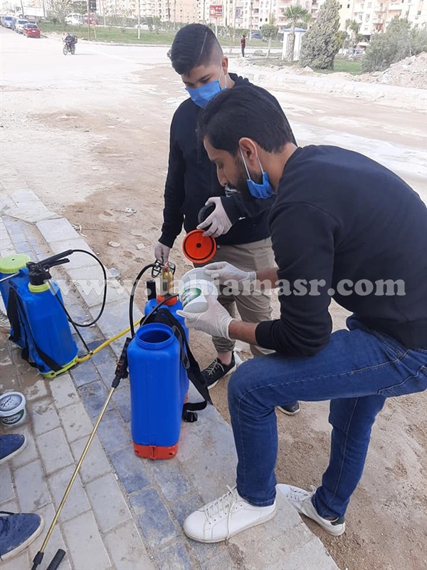 تطوع شباب منطقة "حدائق الأهرام" في تعقيم المساجد والشوارع لمحاربة فيروس كورونا "صور"