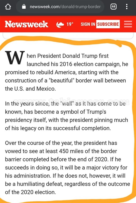 أراد ترامب بناء جدار حدودى طوله 1000 ميل من الأسمنت أو الفولاذ، وأدخل بلاده العام الماضي في حالة من الإغلاق الحكومى بسبب خلافه مع الكونجراس حول تمويل الجدار على الحدود الأمريكية المكسيكية، والذى يريده ترامب لمنع تدفق المهاجرين.