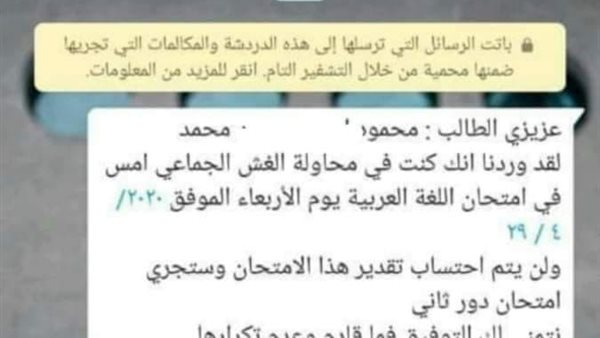 "عزيزي الطالب وردنا أنك كنت في محاولة غش جماعي".. "التعليم" تفاجيء الطلاب برسائل الرسوب (صور)