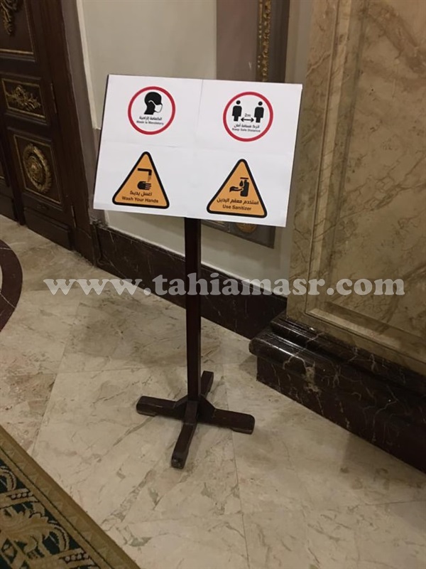 وتضمنت أيضا إرشادات توعوية بشأن التباعد الإجتماعي وضرورة تطبيقه وعدم التراخي فيها مهما كانت التحديات، حرصا علي سلامة وصحة الجميع، حيث جاء الملصق المنتشر بجميع الطرقات والقاعات بهذه المعاني بحيث لا تقل عن متران معنون بـ" اترك مسافة أمان...keep safe distance"، وبجانب ذلك العديد من العبارات التوعوية الموجهة بشكل ورقي وإلكتروني لجميع المترددين علي أروقة المجلس حتي يكون الجميع علي علم بها حرصا علي سلامتهم وسلامة الجميع وسلامة مهام مجلس النواب احريص علي مواصلة جهوده رغم هذه التحديات .