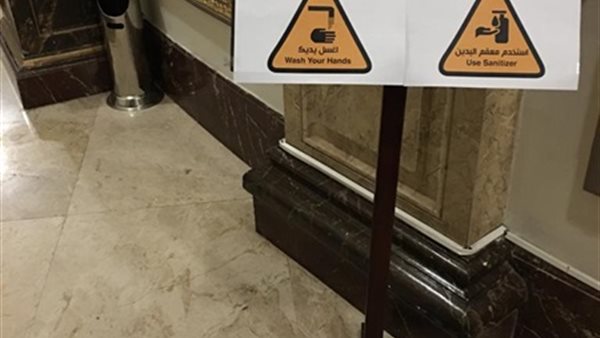 ملصقات ورقية وإلكترونية بمجرد دخول أروقة المجلس بكافة الطرقات والقاعات والمباني والمكاتب، تخاطب جميع من يتردد ويتواجد ويسير بها، باللغة العربية والإنجيلزية،منها ما يضم ضرورة العمل علي الاستمرارية فى غسل الأيدي بمسافات زمنية قليلة معنونة بـ"اغسل يديك...wash your hands"".