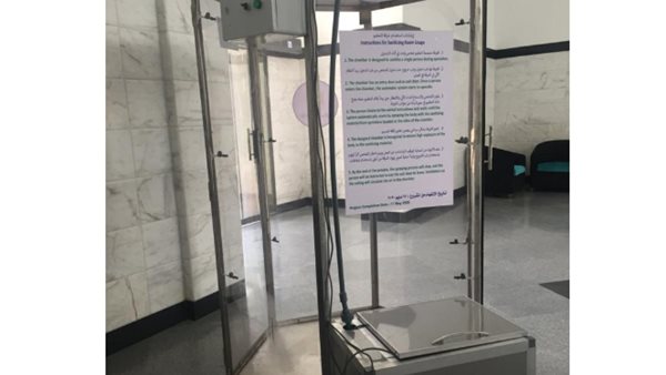 ومع ذلك فإن العمل الروتيني اليومي في المرافق العامة قد يزيد من خطر التعرض للأفراد المصابين، ولذا فان الجامعة قامت بانتاج اول نموذج لغرفة التعقيم المتنقلة واستخدامها بالجامعة ضمن حزمة من الأجراءات الاحترازية التى تتبعها الجامعة للتصدى لجائحة كورونا والحفاظ على جميع العاملين بها والمترددين على الجامعة.