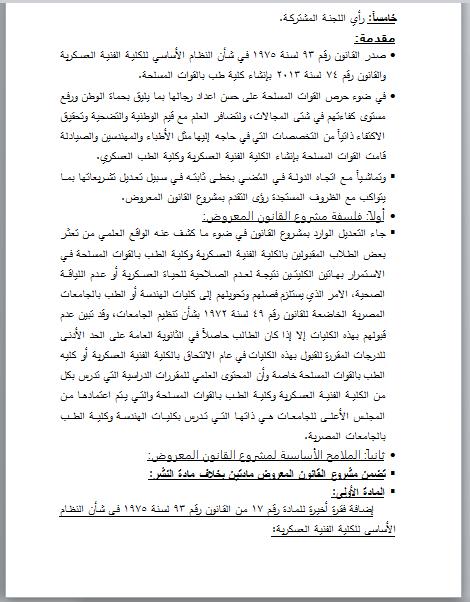 إضافة فقرة أخيرة للمادة الثانية عشر من القانون رقم 74 لسنة 2013 بإنشاء كلية الطب بالقوات المسلحة: