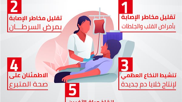 "الصحة": 5 فوائد للتبرع بالدم .. منها تقليل فرص الإصابة بهذه الأمراض (انفوجراف)