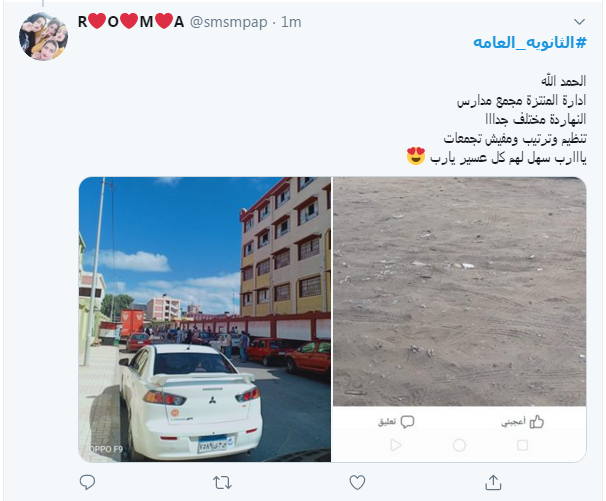 وغرد أخر، قائلًا: "ادارة المنتزة مجمع مدارس..النهاردة مختلف جدا..تنظيم وترتيب ومفيش تجمعات".