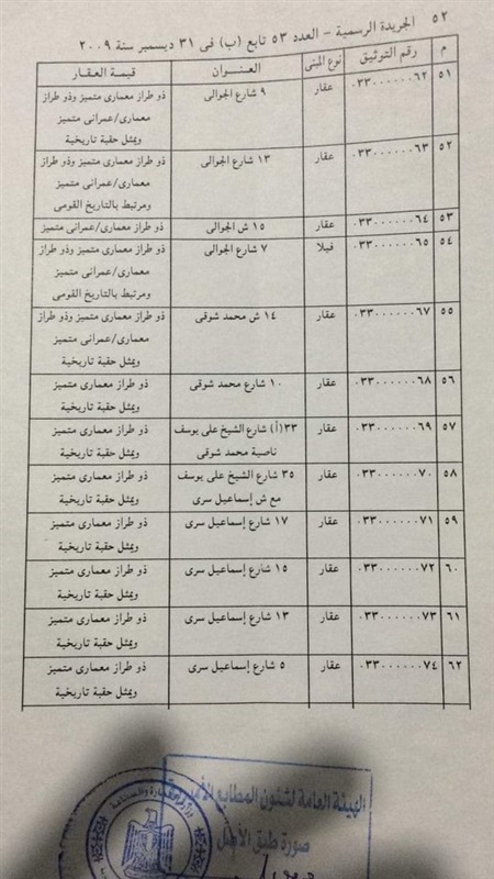 وتابع النائب عبد الحمدي كمال، رغم انه صادر فى جريده الوقائع الرسميه للدوله، بان هذه العقارات ذات طابع معمارى متميز بمنع هدمها واتمام ترميمها وعودتها الى شكلها الاساسى، ورغم اهتمام الرئيس عبد الفتاح السيسيى بتطوير ميدان التحرير وعودته الى طابعه المعمارى المتميز كاطراز اوروبى، الا انه على بعد خطوات من هذا الميدان بحى المنيره الواقع بحى السيده زينب، فقد لجاء قاطنى عقار مطل على شارعين وهما كالتالى العقار 7شارع الجوالى و8 شارع محمد شوقى استنجدوا بالشرطه والحى وهيئه التراث المعمارى لوضع لوحه التسجيل بان هناك عقار ذو طابع معمارى متميز ويمثل حقبه تاريخيه متميزه، الا انه تم هدم نصف عقار لستكمال هدمه بالكامل لانشاء برج سكنى ورغم ان الرئيس عبد الفتاح السيسيى اصدر قرار بمنع الهدم او البناء لمده 6 اشهر ويعاقب من يخالف ذلك بالحبس الا انه رغم ذلك امام اعين الاجهزه تم هدم العقار.