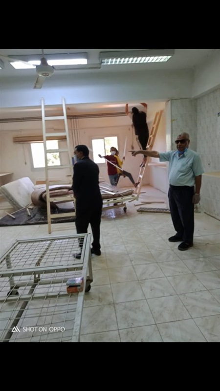 جاري تنفيذ أعمال الترميم و الصيانة بالمبنى، وتجهيز المُعدات الطبية اللازمة بعد تحويله إلى عزل صحي لمُصابي فيروس كورونا، وإرسالها من القاهرة تحت إشراف عزام حساني أمين عام الحزب.