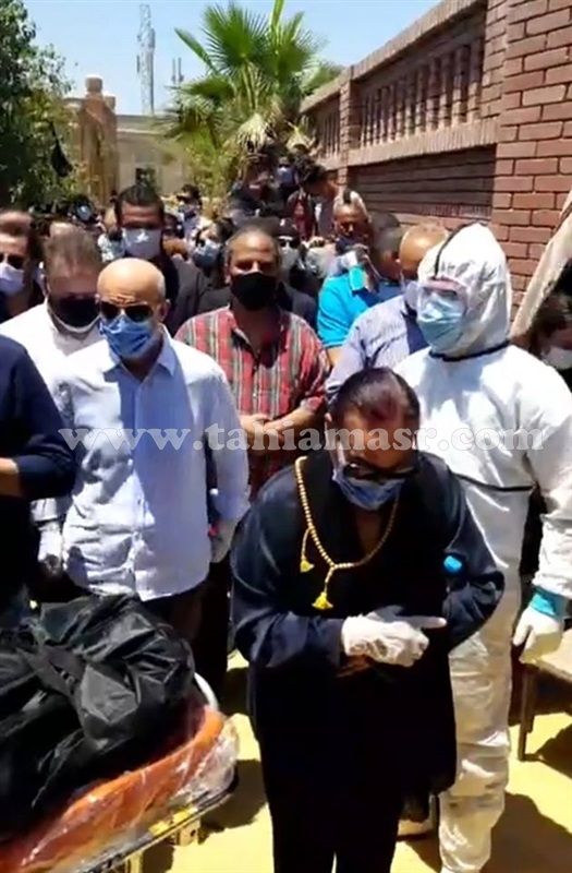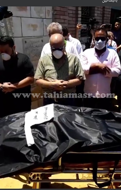 اتبع الأطباء والمصلين، إجراءات السلامة الوقائية ضد فيروس كورونا، أثناء صلاة الجنازة، ليودعوا واحدة من أهم أيقونات السينما المصرية.