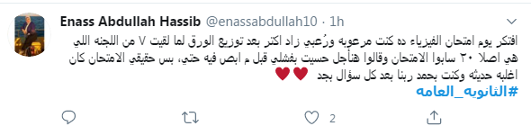 وعلق أخر، قائلًا: "اليوم امتحان الفيرياء في #الثانويه_العامه وهو امر لو تعلمون عظيم "، متمنيًا النجاح لطلاب الثانوية العامة ومرور امتحان الفيزياء بطريقة سلسة.