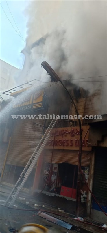 نشب حريق بمحل مستحضرات تجميل بالدور الأرضي في عقار مكون من أرضي و3 طوابق الأول والثاني عبارة عن محلات، لتمتدت النيران إلى العقار.