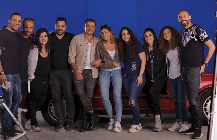 عمرو دياب ودينا الشربيني مع بعض فى كواليس تصوير يابلدنا ياحلوة