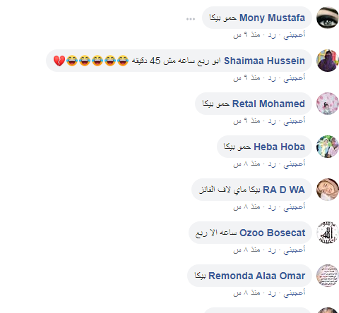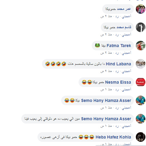 انهالت التعليقات من قبل محبي المطرب الشعبى "حمو بيكا "مرددة "بيكا" و"باتون ساليه بالسمسم هات" وكذلك "ابو45 دقيقة مش ساعة الا ربع" التي تعتبر من أشهر "إفيهاته".