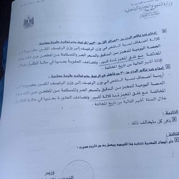 اقرأ أيضا: نائب يحذر: تخفيض وزن الرغيف يؤدي لإثارة الشارع في ظروف صعبة