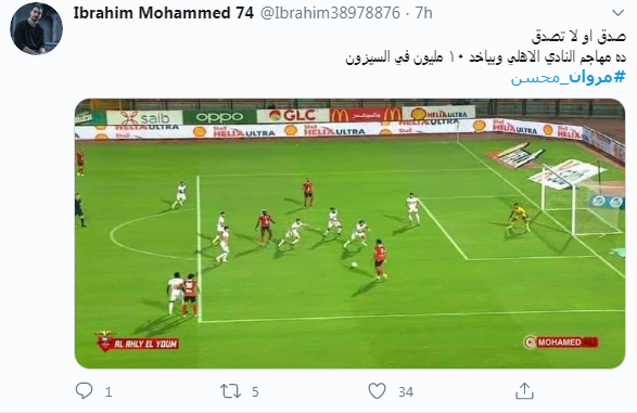 أثار مروان محسن، مهاجم النادي الأهلي المصري، جدلًا واسعًا عبر موقع التواصل الاجتماعي "فيس بوك"، بين جماهير فريقه، بسبب لقطة غريبة خلال مباراة فريقه ضد الزمالك لن يكررها الزمن فوصفها البعض بـ "مهزلة"، في المواجهة التي جمعت الفريقين، مساء أمس السبت، على استاد القاهرة في الجولة الـ21 للدوري المصري الممتاز.