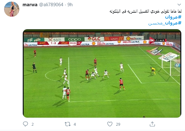 وتصدرت تلك اللقطة موقع التدوينات القصيرة "تويتر" لتوالى التغريدات الساخرة على ما بدر من مروان محسن، حيث قال احد المعلقين على الفيديو في تغريدة له على "تويتر": " ممكن مروان محسن يشتغل حكم راية.. بس ياريت يرفعها صح"، " الباصة دي مش عاجباني مش حاسسها"، وقال اخر" ايه الكوررة دي شكلها مش غريب عليا".