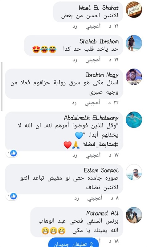 انهالت التعليقات المضحكة على صورة فتحي ومكي، حيث قال احد المعلقين:" فيه ايه بسم الله الرحمن الرحيم مالكم"، و " حتى مكي مرحمتوش"، قال آخر :"برنس السلفي فتحي عبد الوهاب الله يعينك يامكي".