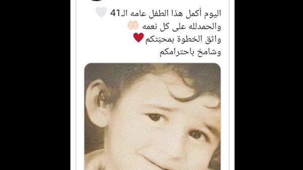 وعلّق "الجسمي" على الصورة قائلا:"اليوم أكمل هذا الطفل 41 عامًا..الحمدلله على كل نعمة واثق الخطوة بمحبتكم وشامخ باحترامكوا" وجمهوره معلقين له بالتهنئة ومزيد من النجاح والسعادة.