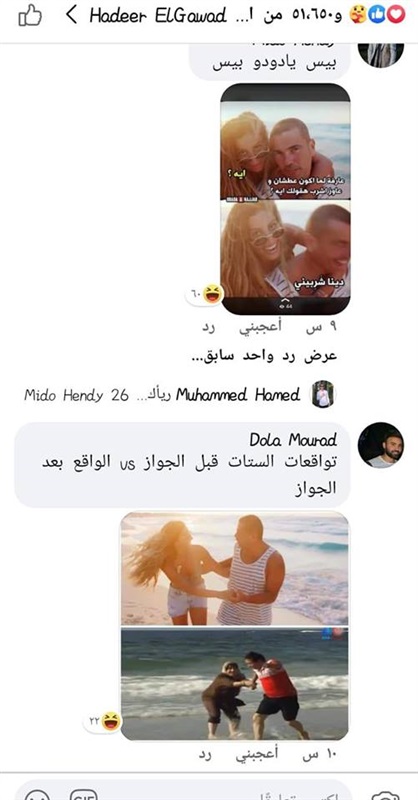 وتوالت تعليقات المتابعين على الصورة التي عبرت عن حالة الحب والمودة بين دينا وعمرو، حيث تنوعت التعليقات بين المعجبين مثل: "جميلة"، "ربنا يخليكم لبعض"، ومن بين التعليقات الإيجابية قال أحد المعلقين:"بغض النظر أن الصورة والكليب بالنهار لكن الصورة حلوة والكليب جميل".