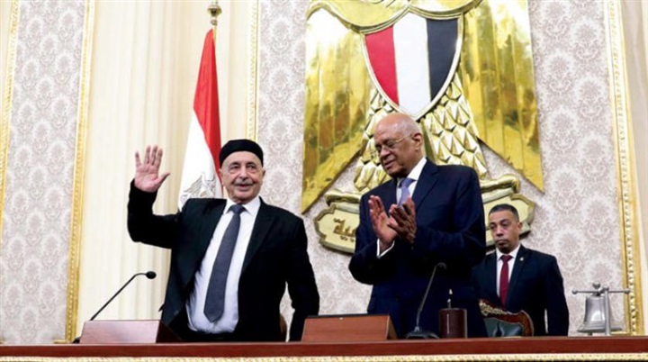 مع دخول تركيا علي خط الأزمة الليبية، ومحاولة فرض سيطرتها بدعمها للعناصر الإرهابية، كان الرفض النيابي لهذه التحركات حاضر وبشكل واضح، حيث مساند الدولة المصرية الشرعية الليبية متمثلة فى مجلس النواب الليبى المنتخب، ولهذا كانت الدعوة للمستشار عقيلة صالح رئيس مجلس النواب الليبي، للمشاركة فى جلسات مجلس النواب المصري، وشرح تداعيات وتطورات الأزمة الليبية للشعب المصرى والعالم أجمع من أعلى منصة البرلمان المصري.