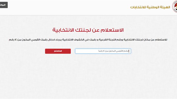 ويمكن للمواطن في حالة مشاركته في العملية الانتخابية، أن يبحث عن لجنته وبيان رقم اللجنة الفرعية ومكانها وعنوان اللجنة ورقمه في كشوف الناخبين باستخدام الرقم القومى الخاص به من خلال رابط اللجنة العليا للانتخابات التالي: