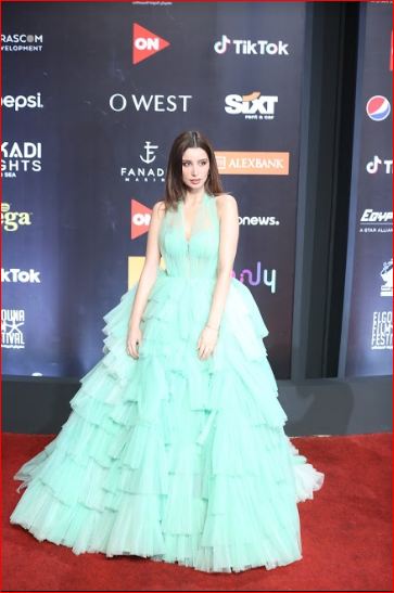 جذبت الفنانة سارة التونسي الأنظار إليها بظهورها الفريد في مهرجان الجونة السينمائي، حيث ظهرت بـ فستانًا باللون الفسدقي الفاتح، بتصميم المنفوش من قماشة التل، اكملت إطلالاتها بوضع مكياج ناعم.