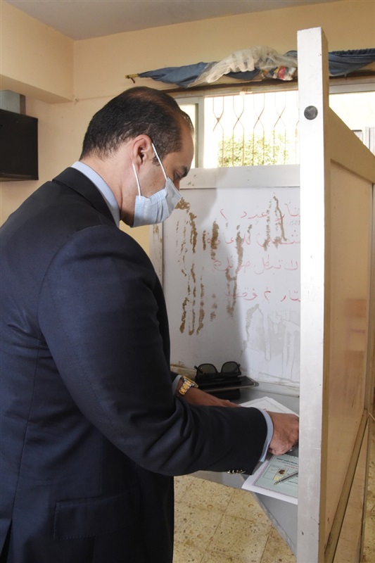 المستشار محمود فوزي يدلي بصوته في انتخابات مجلس النواب