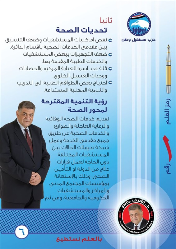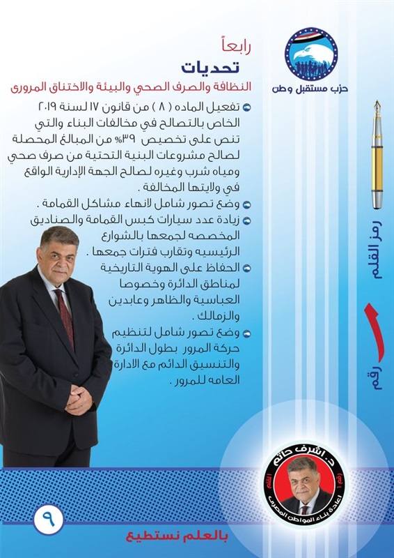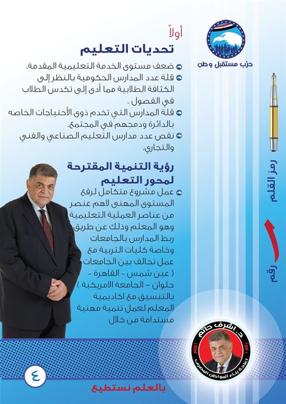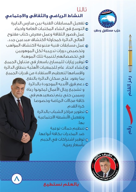 تنشر بوابة تحيا مصر ملامح البرنامج الانتخابي للمرشح الدكتور أشرف حاتم، المرشح رقم 1 بدائرة عابدين والأزبكية عن حزب مستقبل وطن.