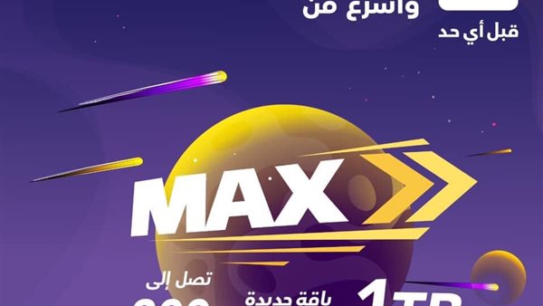 ونشرت المصرية للاتصالات عبر صفحتها الرسمية، "الآن ولأول مرة في مصر، مع باقة MAX الجديدة إستمتع بأكبر وأسرع باقة إنترنت أرضي بسعة تحميل1 TBوسرعة تصل الي 200 Mbps".