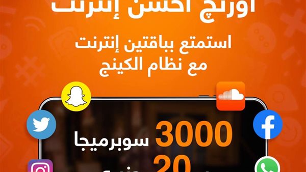 ونشرت أورنج عبر صفحتها الرسمية على موقع "فيسبوك"، "أحسن قيمة للإنترنت من أورنج،3000 سوبرميجا إنترنت و300 دقيقة بـ 20 جنيه فقط مع نظام أورنج الكينج".