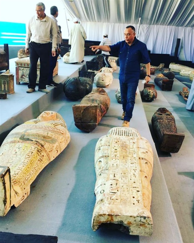 وأذهلت وزارة السياحة والآثار المصرية العالم، على الهواء مباشرةً اليوم السبت، بعد الإعلان عن أضخم اكتشاف أثري عبارة عن توابيت فوق توابيت، في منطقة "جبانة" بسقارة، وهي أحد أجزاء منطقة جبانة منف وتمتد من منطقة أبو رواش شمالا وحتى منطقة دهشور جنوبا، وكانت تستخدم لدفن الملوك وكبار الموظفين والكهنة.