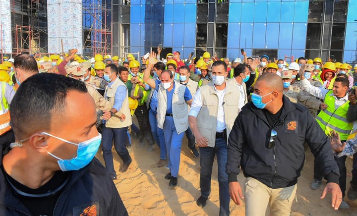 تفقد الرئيس عبد الفتاح السيسي اليوم السبت، مدينة مصر الدولية للالعاب الأوليمبية بالعاصمة الإدارية الجديدة، وسط العمال والمهندسين.