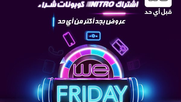 ونشرت المصرية للاتصالات عبرصفحتها الرسمية على موقع "فيسبوك"، "متفوتش عرض WE Friday مع وي.. عشان هيرجعلك لحد %100 من قيمة اشتراك باقة NITRO كوبونات شراء تقدر تستخدمها في Careem - Patrol Fashion - Mounir Nassif - Virgin Megastore".