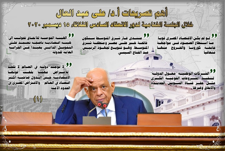 عبد العال أكد أيضا أنه لو لم يكن الاقتصاد المصرى قوياً، ما استطاع الصمود فى مواجهة جائحة كورونا والخروج منها متعافياً.
