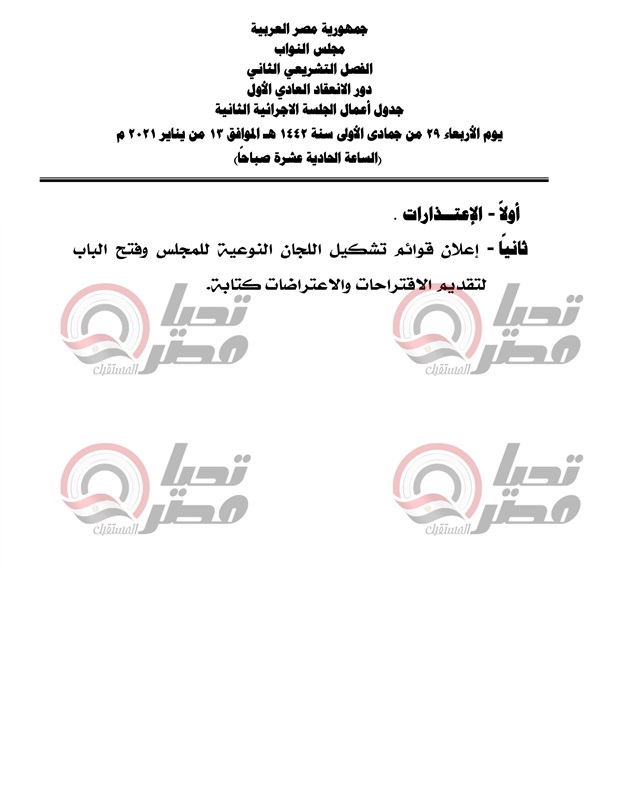 الجلسة الافتتاحية لمجلس النواب غدا