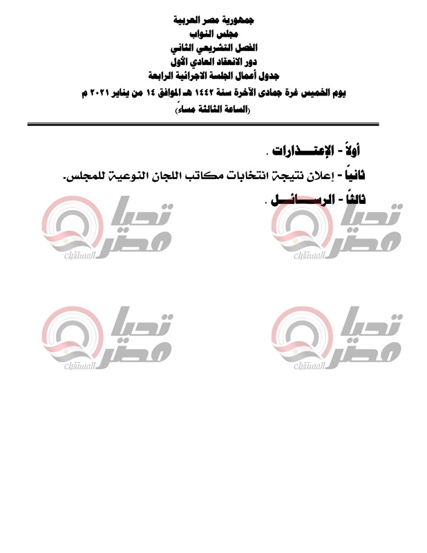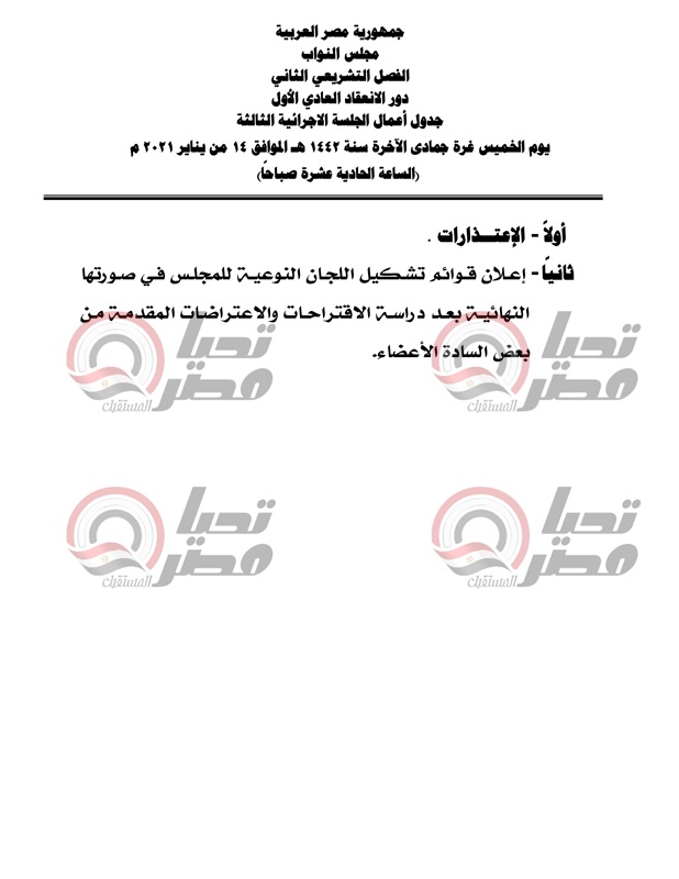 يعقبها انتخاب رئيس المجلس والوكيلين،