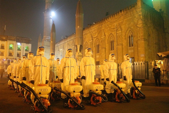 دفعت الجهات المعنية، بعربات التعقيم والتطهير المتحركة وأطقم التطهير المحمولة للقيام بأعمال التطهير والتعقيم لميدان العتبة والموسكى ومنطقة الأسواق وموقف أتوبيسات وجراج ومحطة مترو العتبة وجراج الأوبرا وكذا المنشآت الحكومية كهيئة البريد والمسرح القومي حيث تعد من أهم المناطق بالقاهرة التى تشهد كثافة عددية كبيرة من المترددين عليها بشكل يومي، بالإضافة إلى محيط مسجد الحسين والجامع الأزهر وعدد من المنشآت المحيطة بهما.
