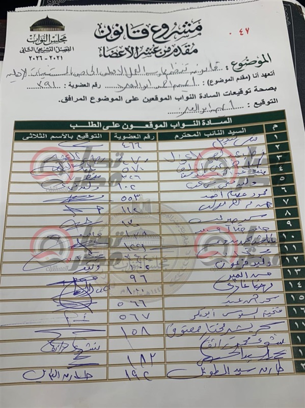جاء ذلك بعد أن حصل النائب على التوقيعات المنصوص عليها وفق اللائحة