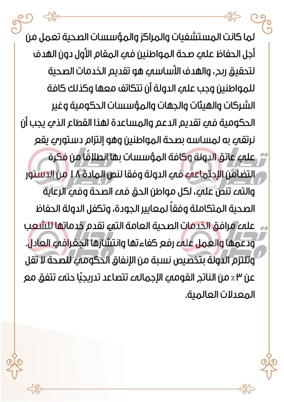 القطاع الذي يجب أن نرتقي به لمساسه بصحة المواطنين وهو إلتزام دستوري يقع على