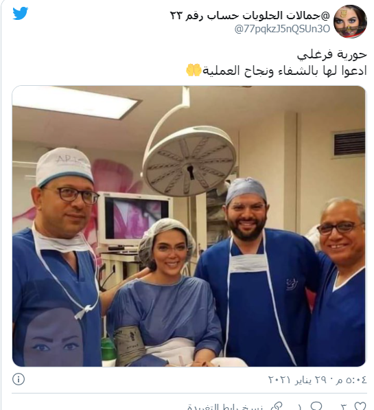 صور حورية فرغلي من داخل غرفة العمليات تثير ضجة على السوشيال ميديا
