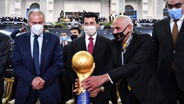 يتم تسليم الكأس عن طريق حسن مصطفى رئيس الاتحاد الدولى للعبة ، و وزير الرياضة