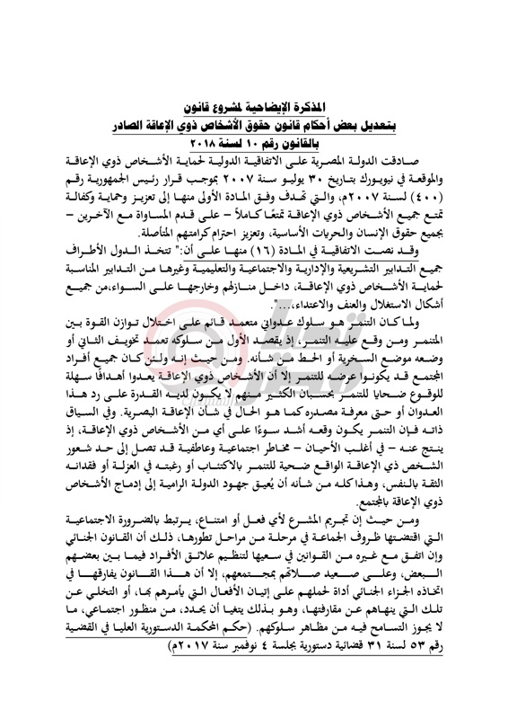 تضيق الخناق علي ظاهرة التنمر ضد الأشخاص ذوي الإعاقة فقد أعد مشروع القانون