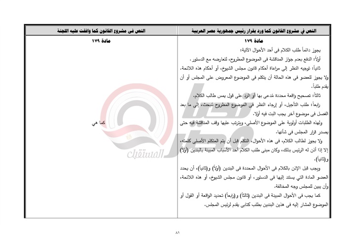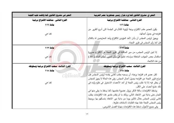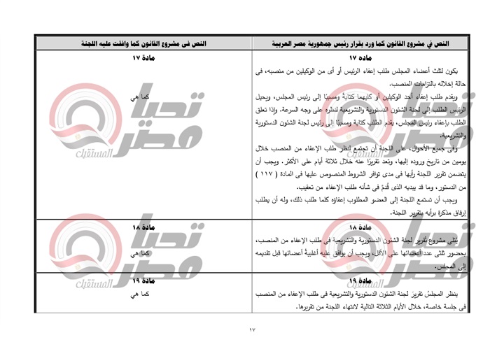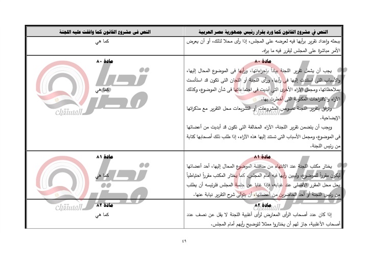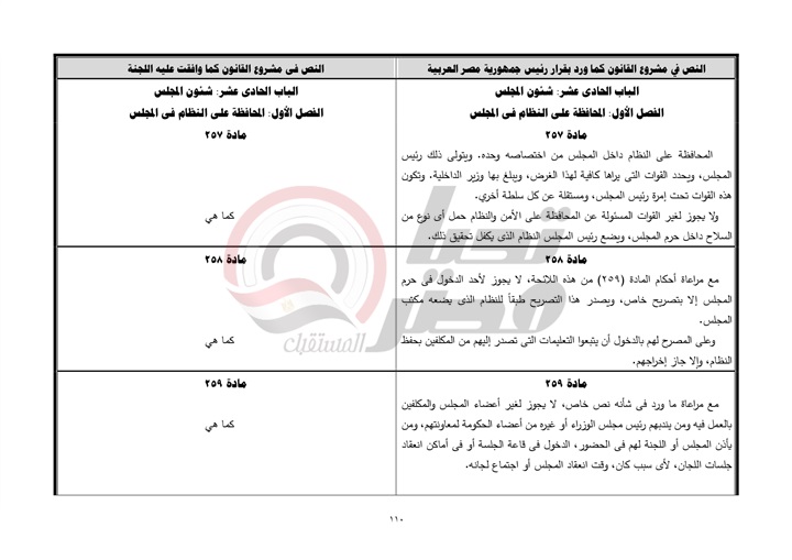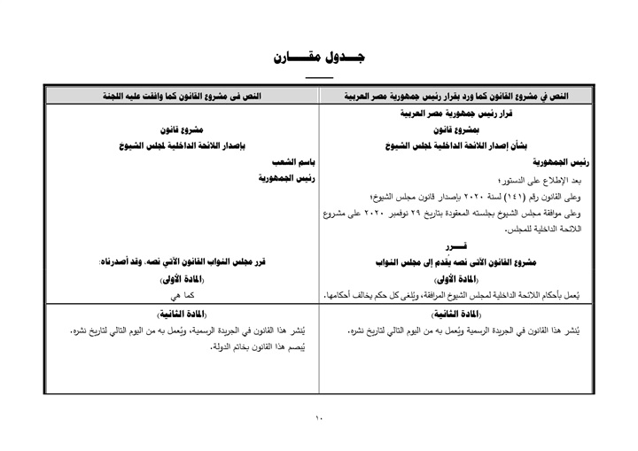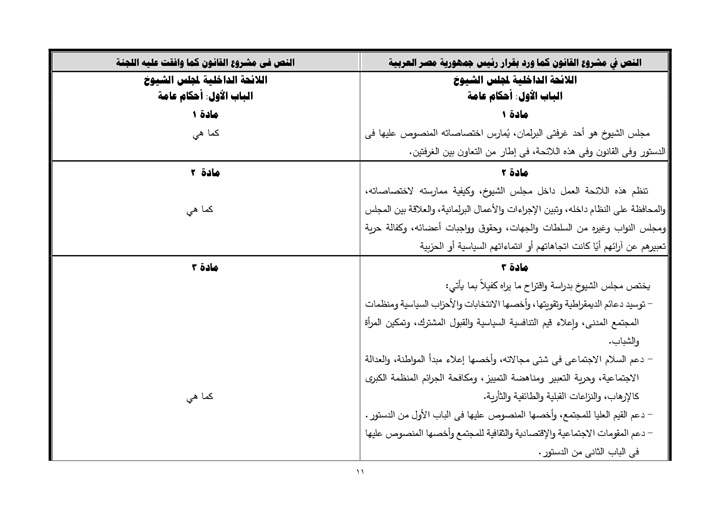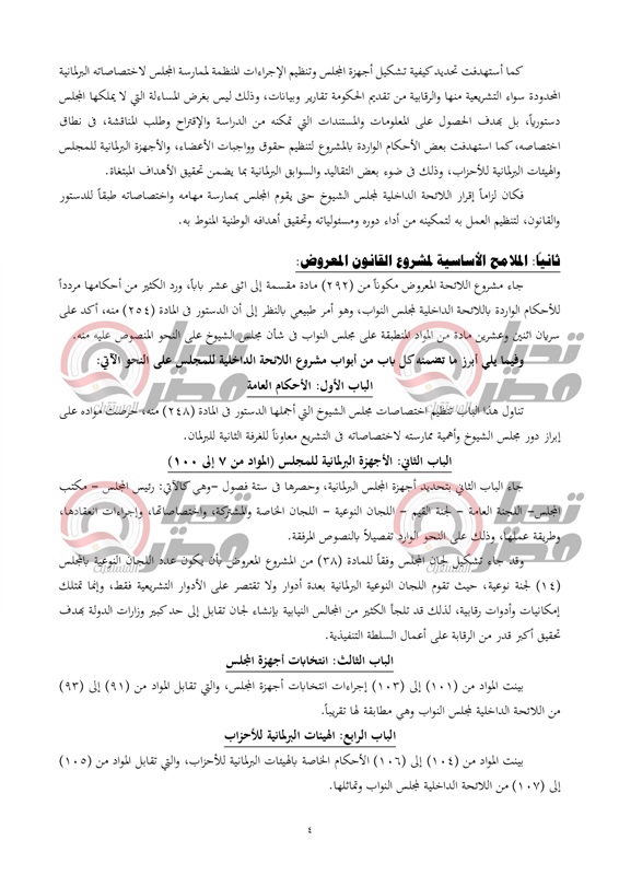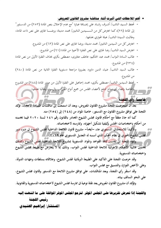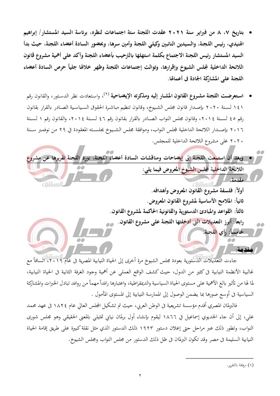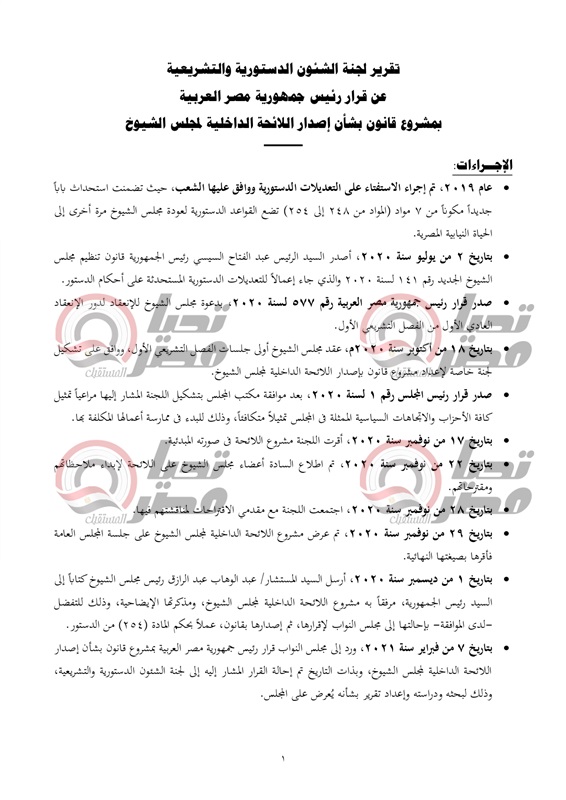 ينشر موقع تحيا مصر نص تقرير لجنة الشئون الدستورية والتشريعية، عن قرار رئيس جمهورية مصر العربية بمشروع قانون بشأن إصدار اللائحة الداخلية لمجلس الشيوخ.، والمنتظر أن يتم مناقشته يوم الأحد القادم بمجلس النواب.